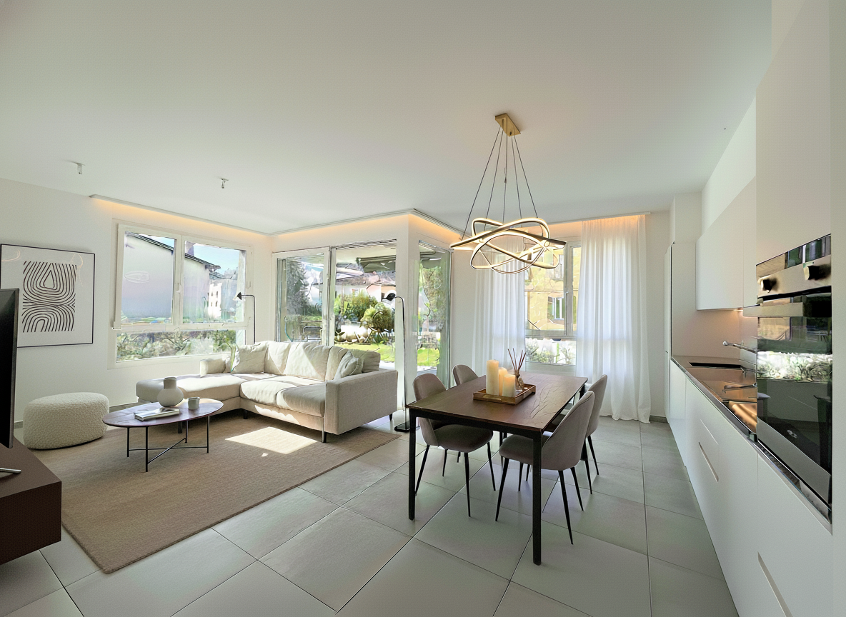 Situato al piano terra, questo luminoso appartamento di 86 mq unisce comfort moderno, materiali di qualità e spazi funzionali, creando un ambiente elegante e accogliente.