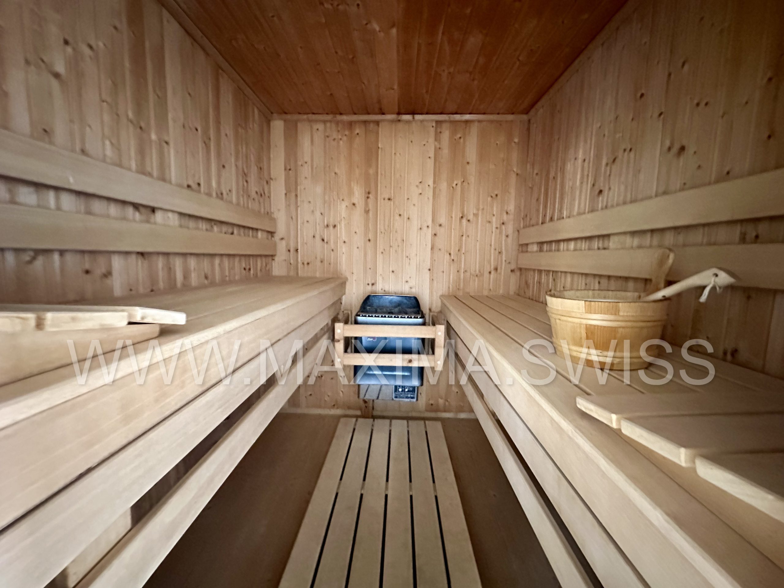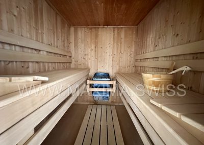 – Chalet adibito ad area SPA esclusiva, con panorama sul paesaggio circostante, dotata di sauna, spogliatoio, doccia, area relax con impianto musicale.