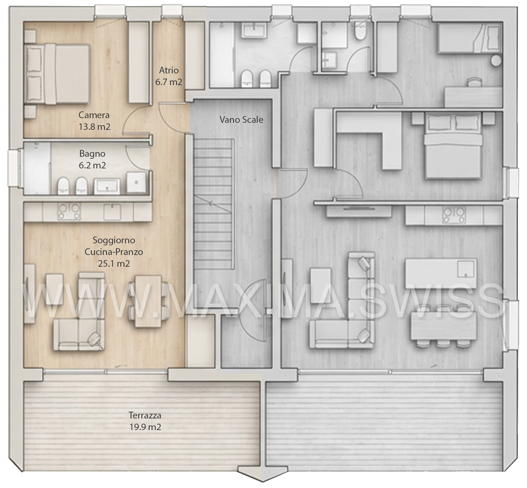 Ogni appartamento è progettato con una suddivisione degli spazi ottimale e funzionale, per garantire comfort e praticità quotidiana.