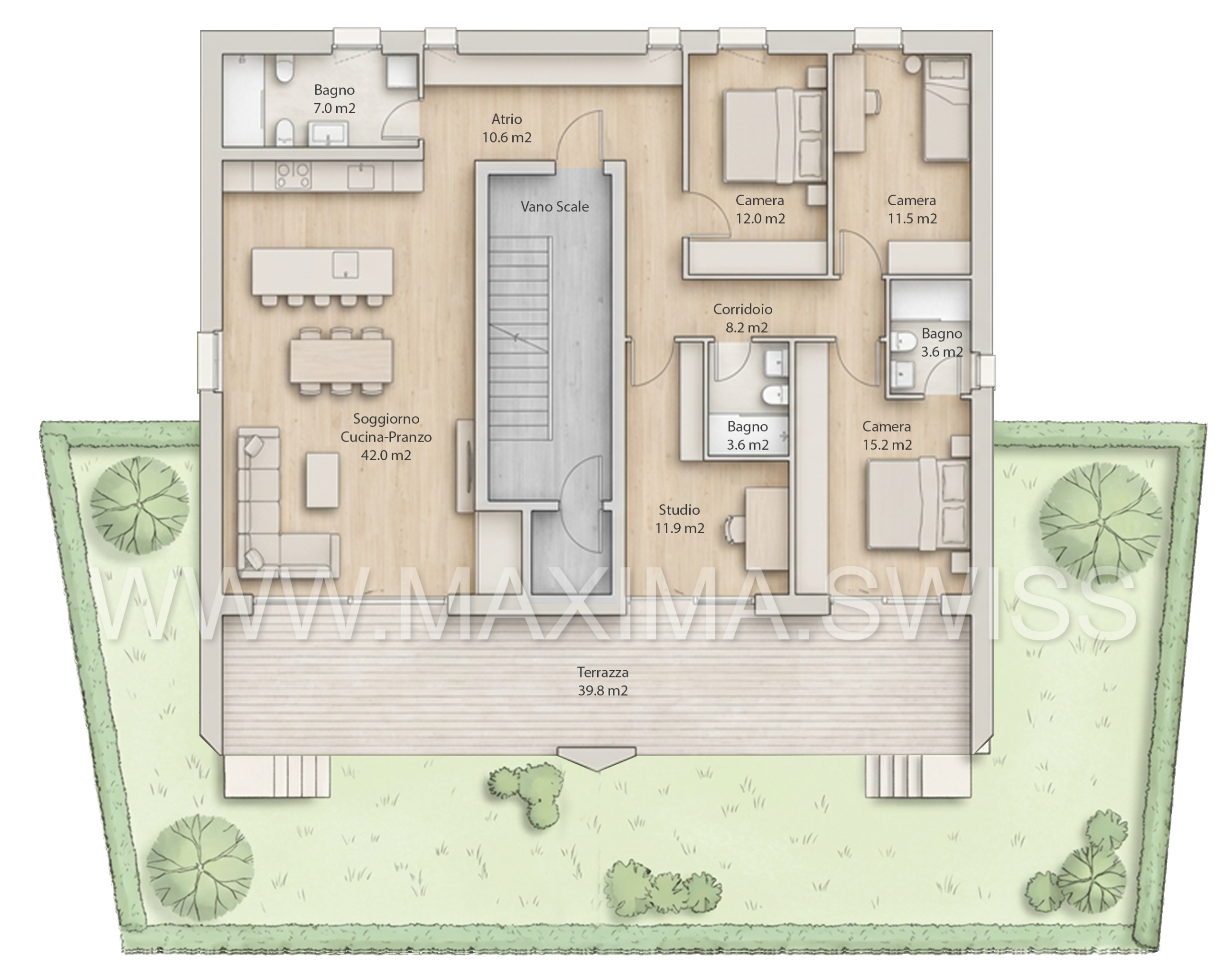 • Giardini ad uso esclusivo e ampie terrazze coperte
