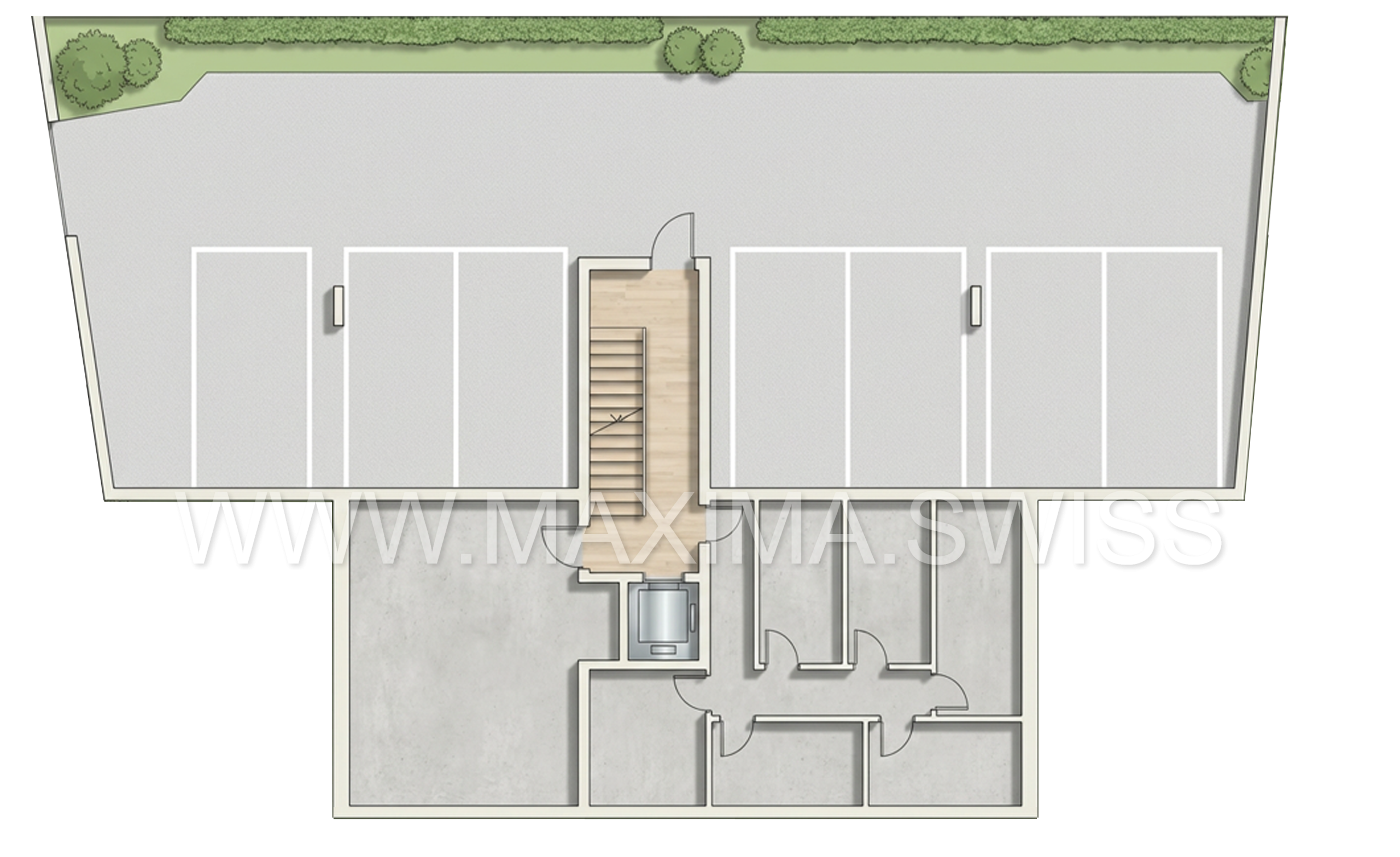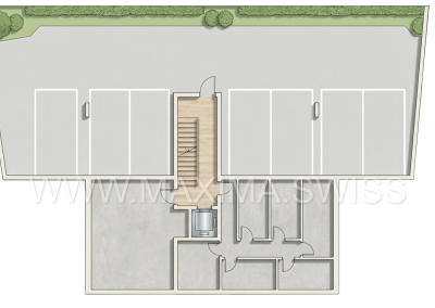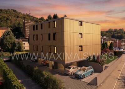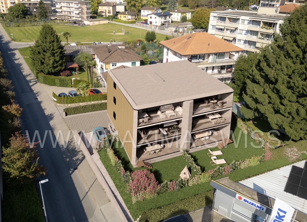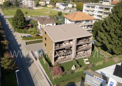 La nuova costruzione si sviluppa su 3 livelli fuori terra ed è composta da sole 6 unità abitative (due per piano), 5 posteggi esterni coperti, 2 posteggi scoperti e un piano semi-interrato adibito a cantine e locale tecnico.